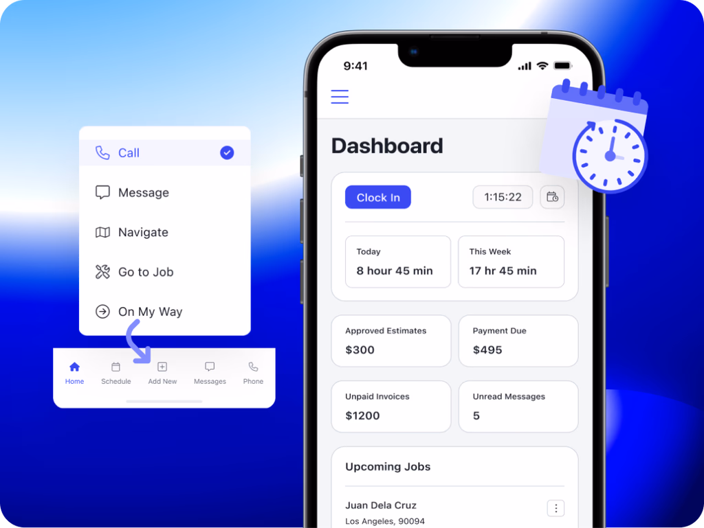 Manage time, payments, jobs, and messages seamlessly—all from one comprehensive view.