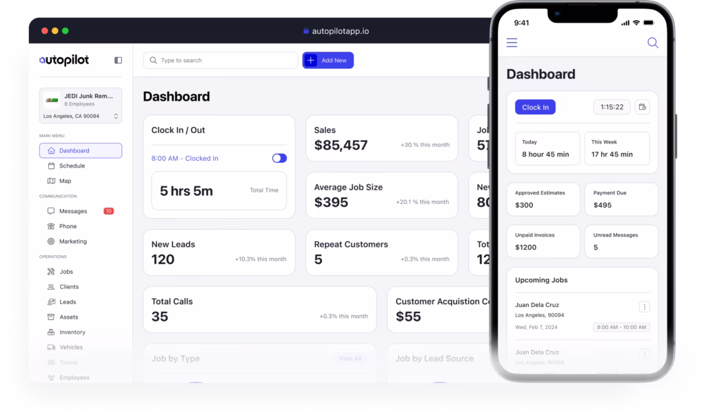 Manage time, payments, jobs, and messages seamlessly—all from one comprehensive view.