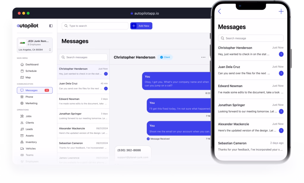 Access full conversation details with the name, job number, and timestamp for job creation displayed at the top, ensuring context is always clear.